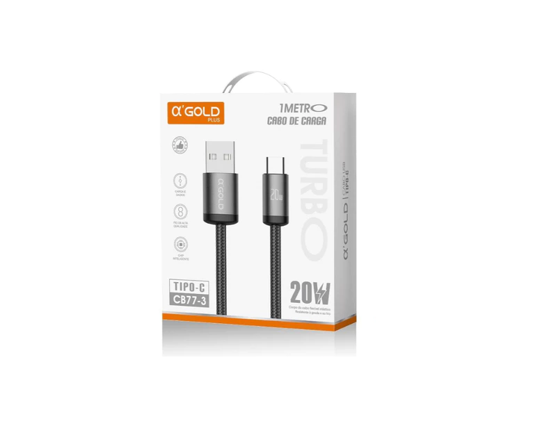 Cabo de carregamento e dados Turbo 20W USB para Tipo-C A’Gold CB77-3