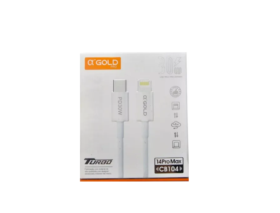 O Cabo Lightning A’Gold Turbo 30W PD30W CB104 2 Metros é um acessório de alta qualidade, projetado para garantir uma carga rápida e eficiente para dispositivos Apple, como iPhones, iPads e iPods. Com 2 metros de comprimento, ele oferece flexibilidade e praticidade, permitindo que você carregue seu dispositivo com maior liberdade de movimento.