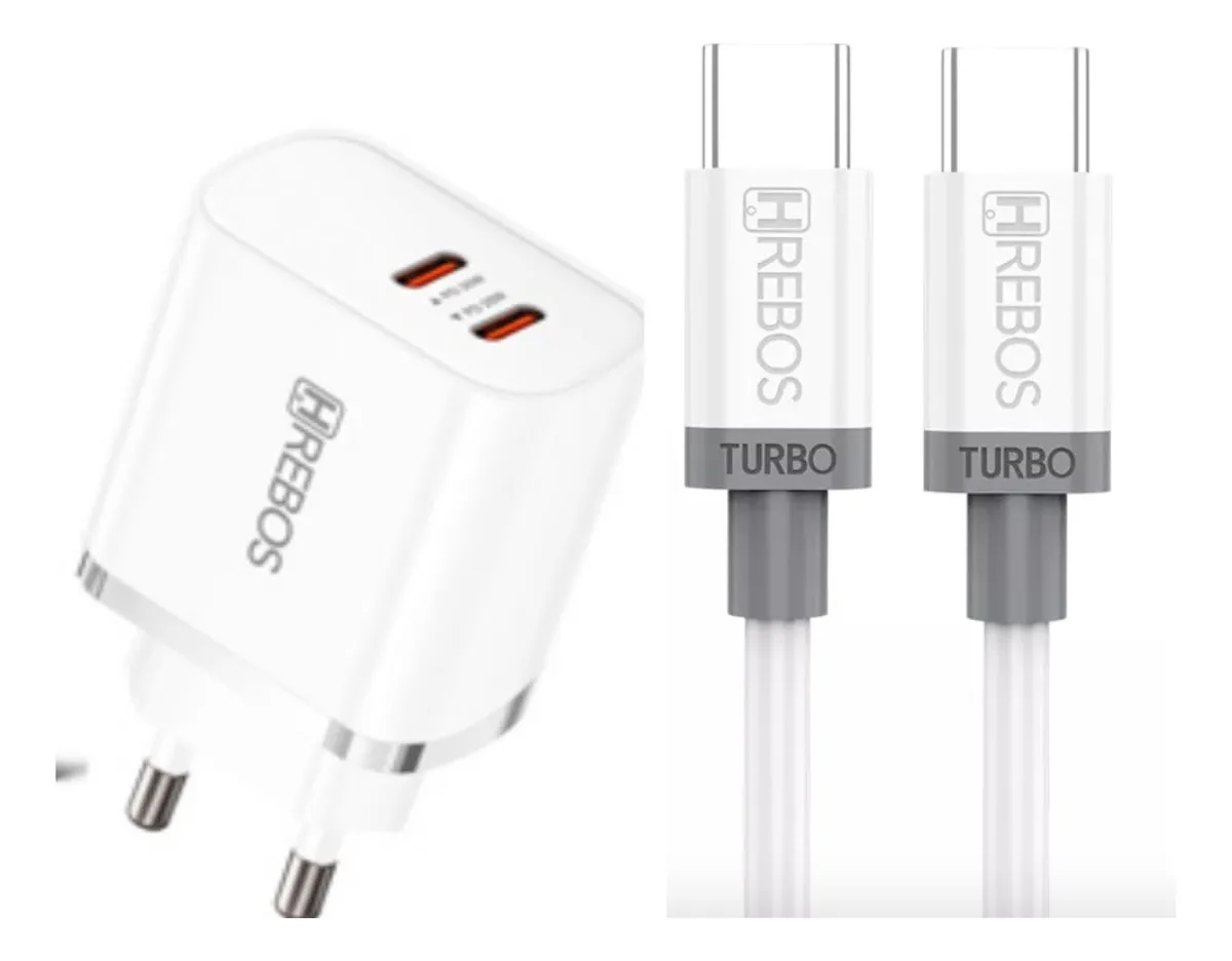 Carregador Turbo Tipo C Duplo – 40w Combinado + Cabo Tipo C CRG-216C